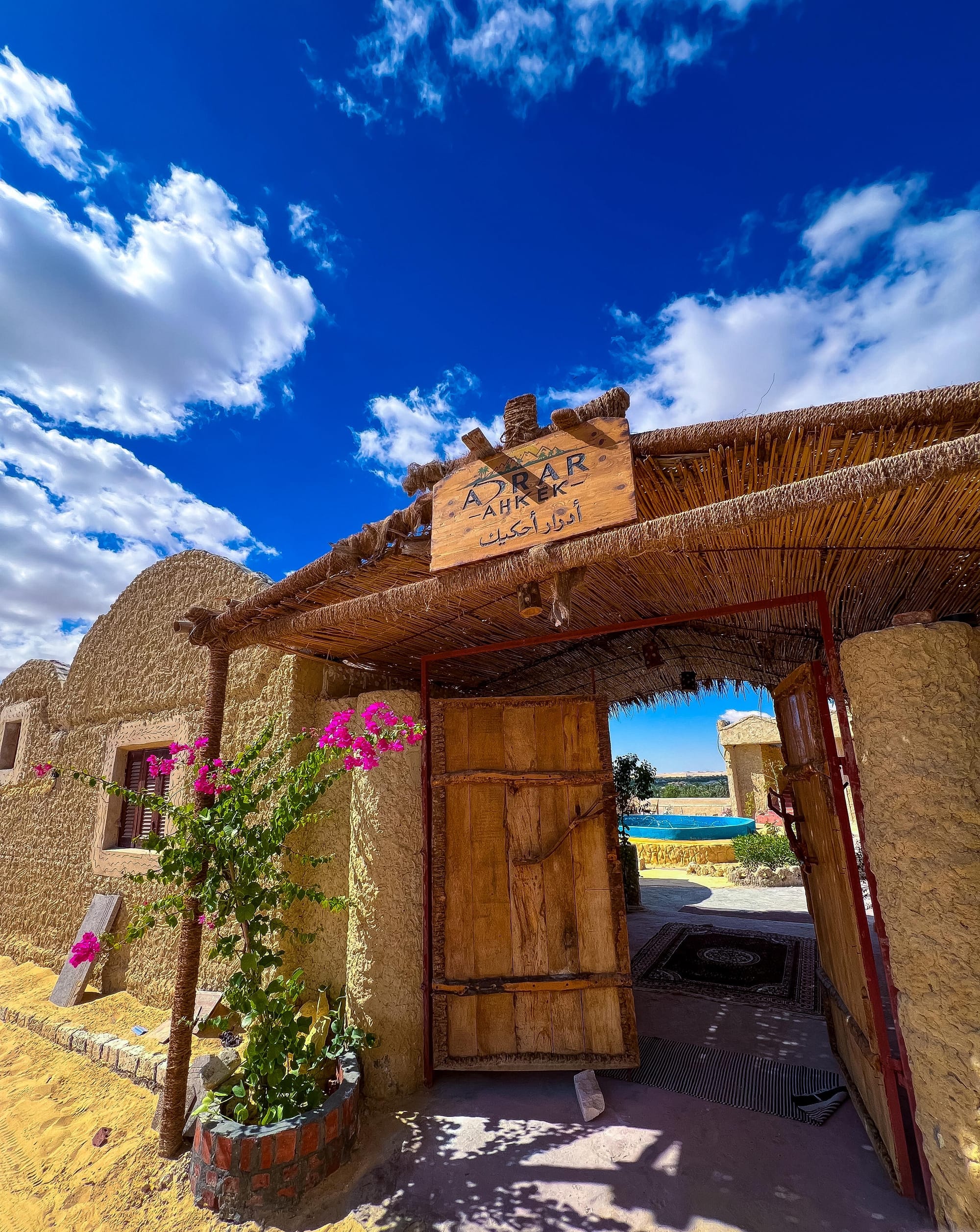 Adrar Ahkek is a tranquil hotel located in the heart of Siwa, Egypt, offering guests a peaceful haven surrounded by the natural beauty of palm trees and oasis scenery. The hotel features comfortable accommodations, modern amenities, an outdoor hot water eye, a garden, terrace, restaurant, and bar, making it an ideal place for relaxation and enjoying the magic of Siwa. With attentive room service and a serene atmosphere, Adrar Ahkek provides a memorable stay for travelers seeking an authentic and restful experience in the unique desert oasis environment of Siwa.